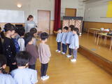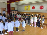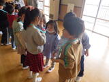 「子どもお別れ会」をしました。3月18日の修了証書授与式で卒園する年長組の子どもたちに年中組と年少組の子どもたちが「ありがとう」の気持ちを伝える会です。進行役は年中組です。