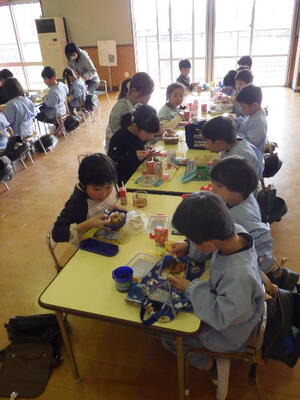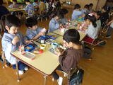 手づくりのプレゼントを渡すと年長組の子どもたちは「ありがとう。」と言ってペンダントを嬉しそうに見ていました。年長組の子どもたちからはメッセージが送られました。少しずつバトンが渡されます。カレーパーティーに向けて準備もがんばりました。