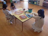 朝から小雨が降っていましたので、残念ながら園庭では遊べませんでした。「外で遊びたいな。」という声も聞こえましたが、子どもたちはお部屋で遊びを広げていました。