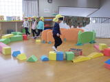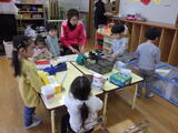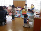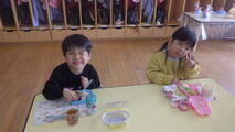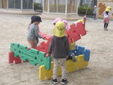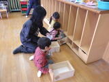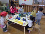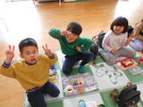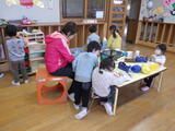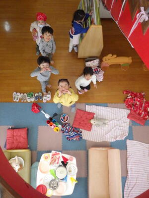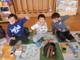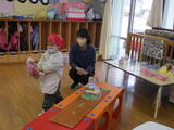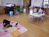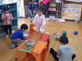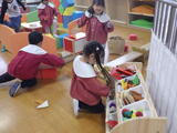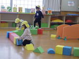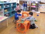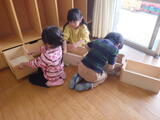 年長組の子どもたちが卒園し、今日から1週間は年少組と年中組の子どもたちが登園します。早速、好きな遊びをして過ごしました。