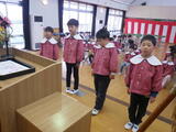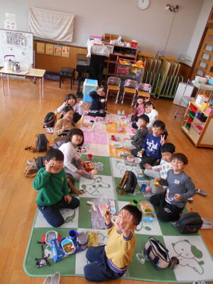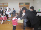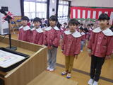 令和7年度の修了式の日を迎えました。幼稚園でたくさん遊ぶ中で、できるようになったことや分かるようになったことがたくさんあります。友達と一緒に遊ぶのも大好きです。夢中になって遊んで、空っぽになったお弁当箱とたくさんのお土産話を持ち帰る毎日でした。保護者の皆様、地域の皆様ありがとうございました。