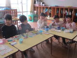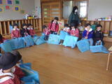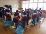 お部屋で担任の先生から「ふなとっこ」を受け取り、明日からの休みの過ごし方の話を聞きました。
