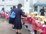 南中学校の卒業証書授与式が終わり、12月に保育実習で来てくれたお兄さんお姉さんに「遊んでくれてありがとう。」「ご卒業おめでとうございます。」をみんなで伝えました。