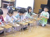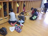 今日から午前中の保育です。おあつまりの後でラウンドチェーンをしたり、園庭で遊んだり、お部屋で歌を歌いました。「もっと遊びたい!」と言いながらも片づけを最後までがんばったり、帰りの支度も短時間でできるようになりました。